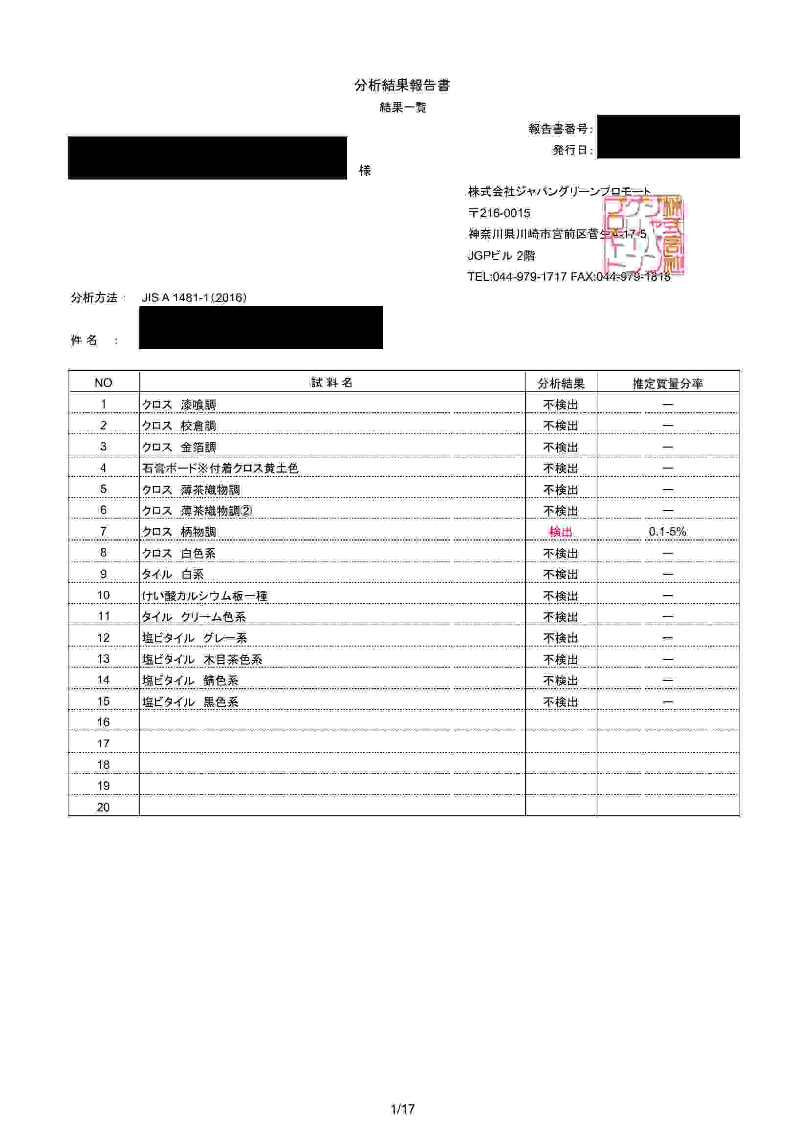 アスベストの分析依頼書を送付してください。こちらのページから簡単に作成・送付が可能です。